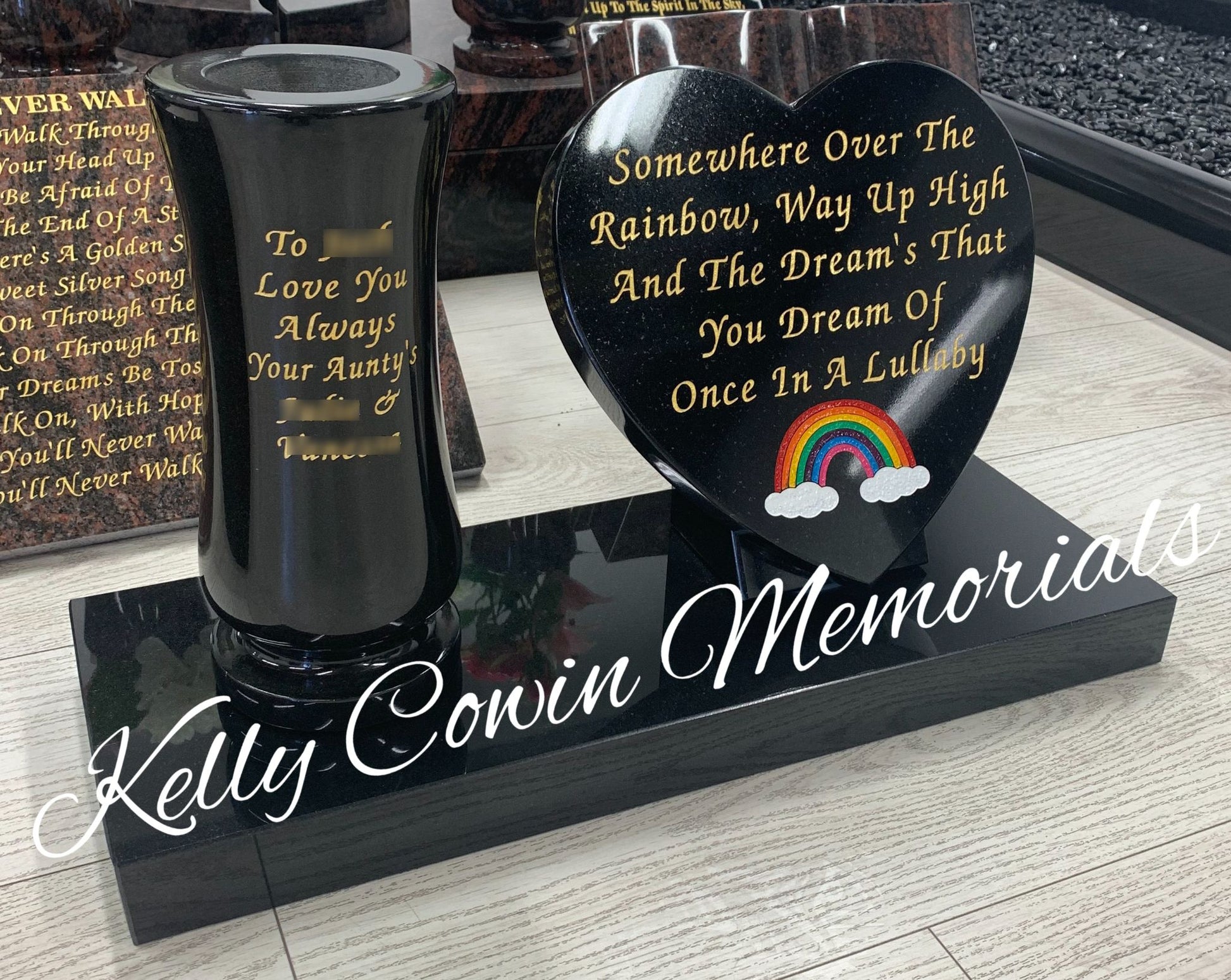 (Please note that Kelly Cowin Memorials may add vat as required by law to any extra payments they pay to any third party at the customer’s request)